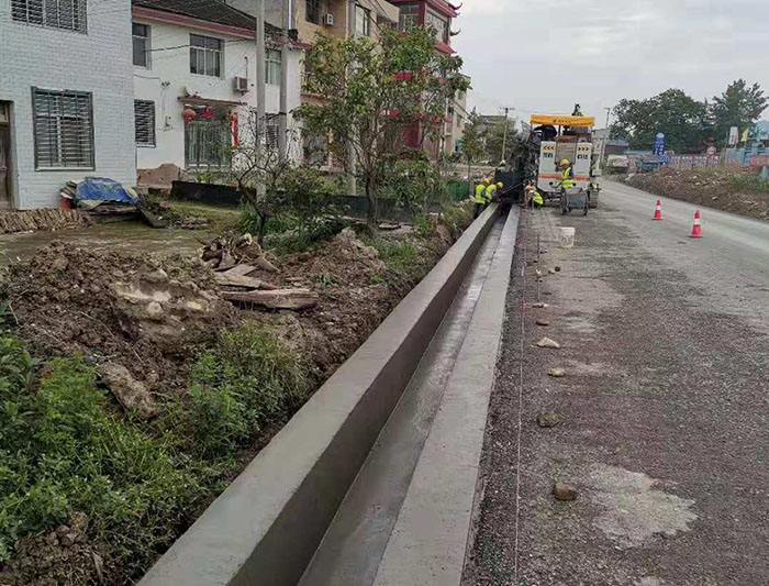 湖南張家界排水溝滑模施工-NC1300滑模攤鋪機(jī)案例